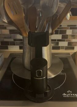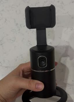 What an elegant little device! It operates by tracking your face, and I'm absolutely delighted with it. It's quite responsive, though there's a bit of a learning curve, but overall, it's fantastic. It's compact and sturdy, and it securely holds my phone in both portrait and landscape orientations, preventing any tipping over. Its compact size is a plus.