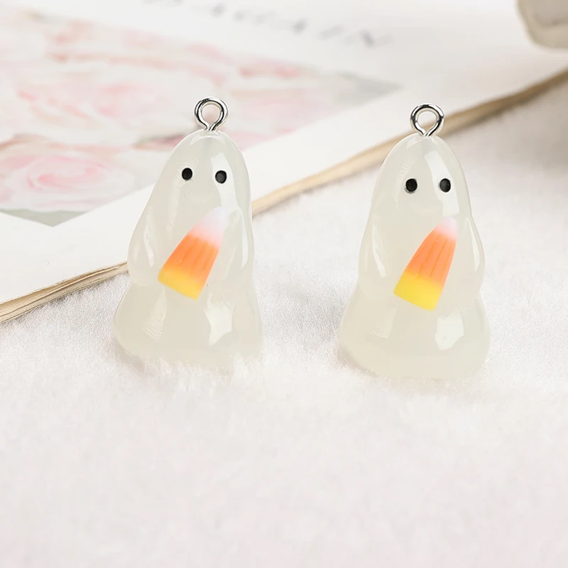 Add a touch of eerie glow and festive fun to your DIY creations with our 6-Piece Glow-in-the-Dark Halloween Charms set. Featuring adorable 3D designs of corn candy and ghost pendants, these resin charms are perfect for making unique keychains, decorations, and more. Each charm glows in the dark, bringing an extra layer of spookiness to your Halloween crafts.