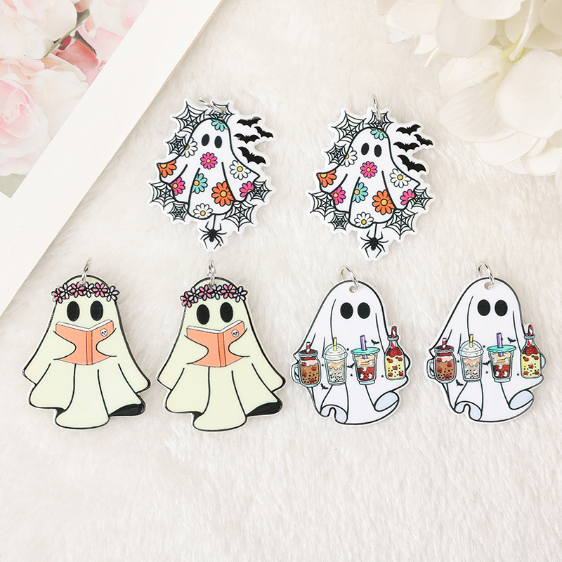 6Pcs Acrylic Halloween Ghost & Flower Charms