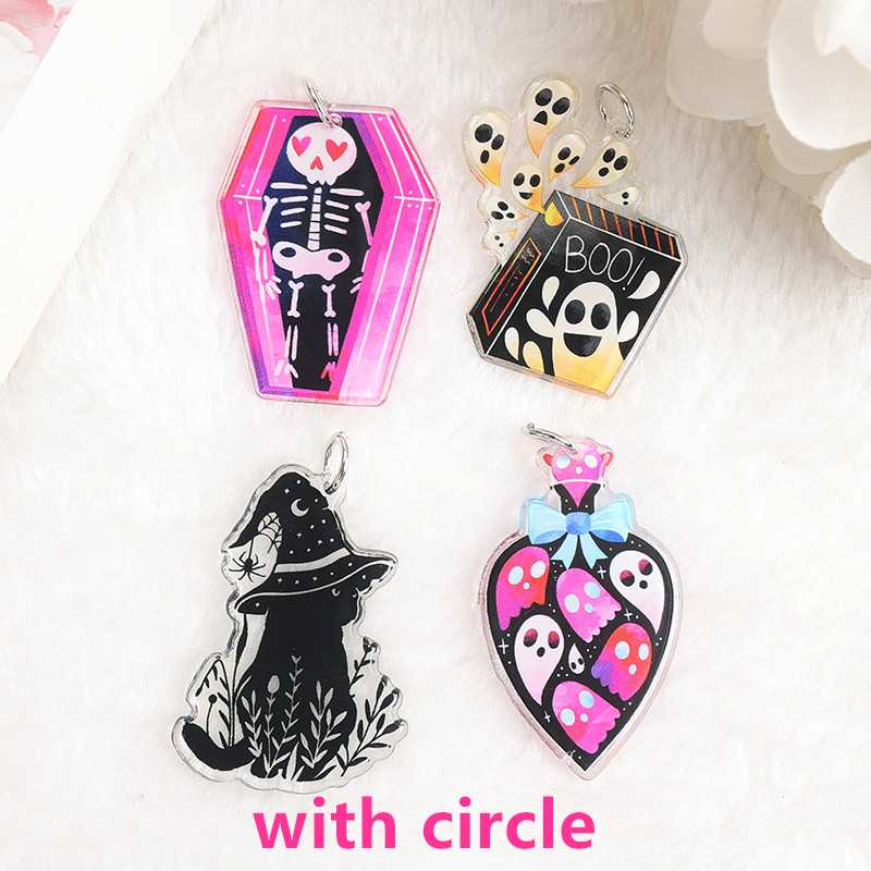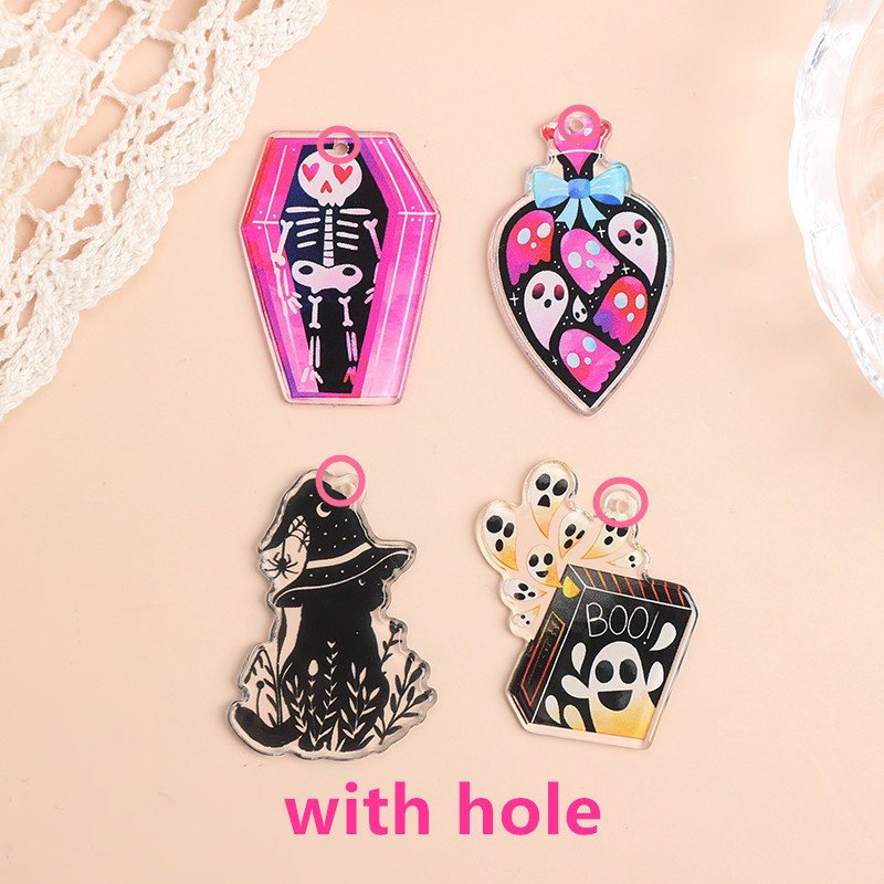 Each set includes a mix of classic Halloween symbols like a witch’s cat, a haunting coffin, a ghostly bottle, and more. The charms are crafted from high-quality acrylic and feature zinc alloy metal elements, ensuring both durability and lightweight comfort. Whether you’re making gifts for friends or adding a personal touch to your own accessories, this set is versatile and endlessly creative.
