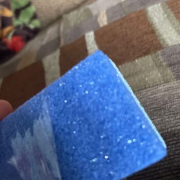 Yes, the dark blue side sheds a bit, but the results are astonishing. Calluses were practically gone after the first use. I don't know how it works so quickly, but I'm just glad it does. It only takes a moment at the end of my shower. I'm a fan.