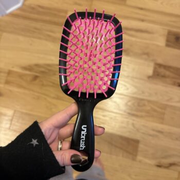 Despite its unassuming appearance, this brush is a game-changer. I have abundant, fine, curly hair that often forms severe knots. Typically, I'd have to painstakingly brush it out in small sections, but this brush allows me to comb through normally. Its effectiveness became evident when my nephew, who has been struggling with his afro, used it. The brush slid through his hair effortlessly, leaving him and his sister in disbelief. He was even able to style his hair for the first time in ages. Both my niece and nephew added the brush to their Amazon carts almost immediately.