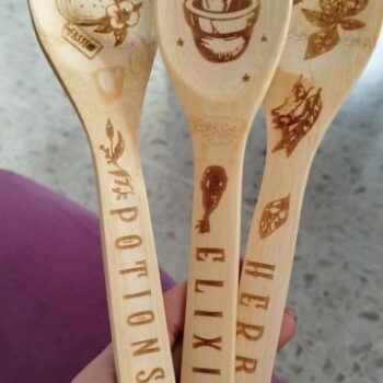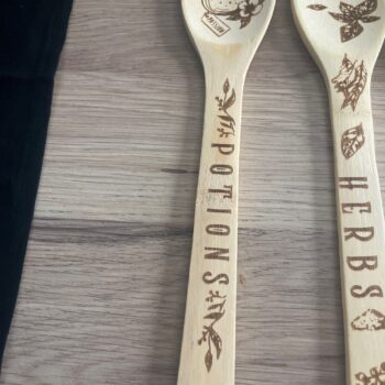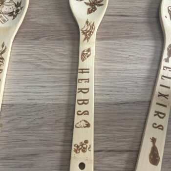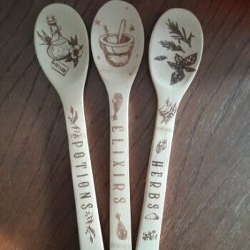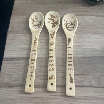 These spoons are simply enchanting! The wood-burning designs featuring witches and potions add a unique touch to my kitchen. They're not only decorative but also functional for cooking. Highly recommend!