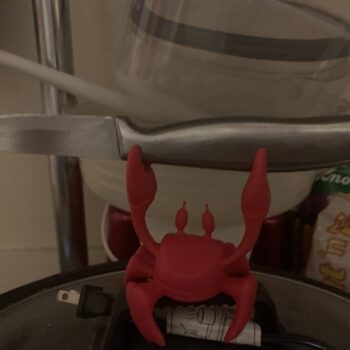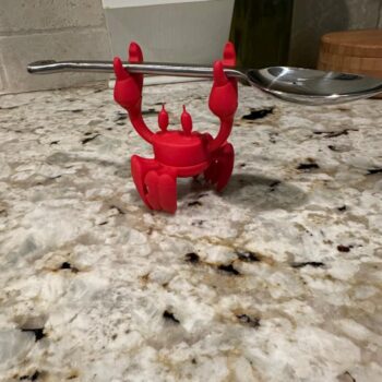This little gadget is fantastic. I got it for my home after seeing something similar at my parents' house, but this one is more fun as it's shaped like a crab. It swivels to hold the spoon in different positions, which I didn't realize when I bought it. It's very easy to clean and use.