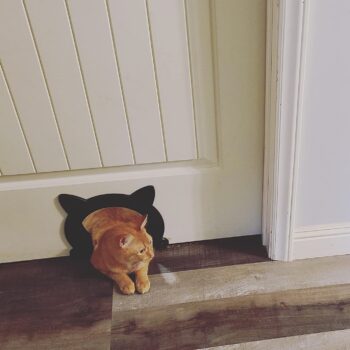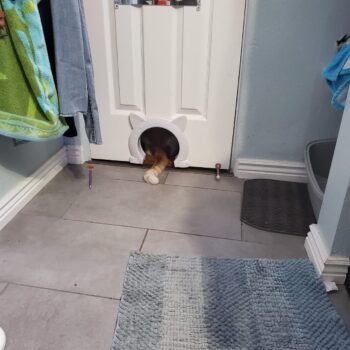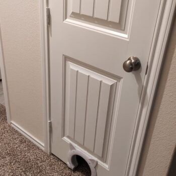Our kitten adores his door to his room, allowing us to keep his litter box out of sight.