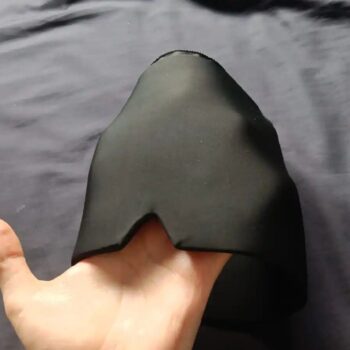 The material's quality is immediately noticeable, making it perfect for migraine relief. It covers the entire head comfortably and stays in place, although it's slightly expensive.