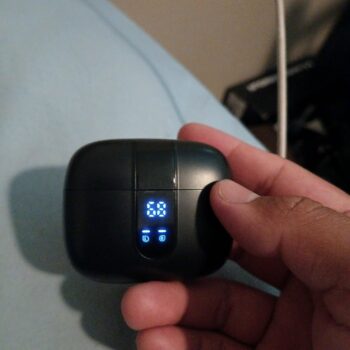 I'm genuinely thrilled with these earbuds! The sound quality is exceptional, requiring only 30-40% volume for a full experience. The fit is impeccable, solving my long-standing issue with earbuds falling out. They were a perfect fit straight out of the box and after three days of use, I'm just now charging them (USB cord included). The battery indicator with numeric display is a plus, and I love the green LED light on the case. The earbuds announce when they're in my ear, and they're so comfortable I hardly notice them. They sync automatically, allowing easy music control with a soft touch. The price is unbeatable. I'm so satisfied that I plan to gift my previous purchases and buy another pair of these for myself. A super happy customer here, and this is a genuine, unpaid review!